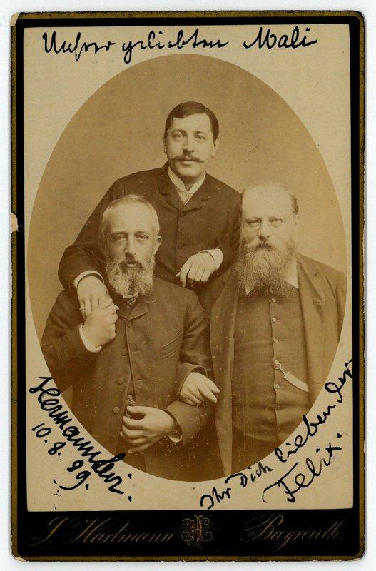 German conductors Hermann Levi (1839-1900), Felix Mottl (1856-1911) and Hans Richter (1843-1916). Photo 10-08-1889.