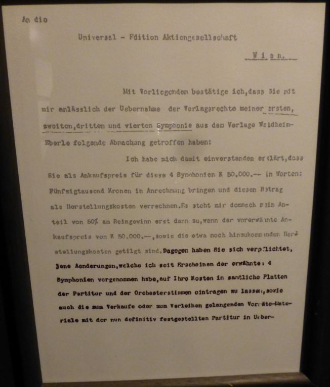 Contract Gustav Mahler 12-08-1898 (Year 1898) and 11-09-1910 (Year 1910) with Universal Edition (UE). (3/3)