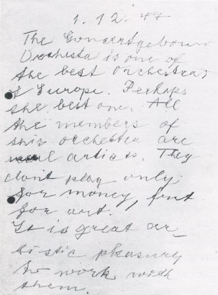 1947. 01-12-1947. Letter from Otto Klemperer (1885-1973) to Imre Kun: ‘The Amsterdam Royal Concertgebouw Orchestra (RCO) is one of the best orchestras of Europe. Perhaps the best one. The members of this orchestra are near artists. They don’t play only for money, but for art. It is a great artistic pleasure to work with them’.