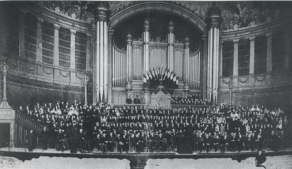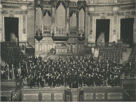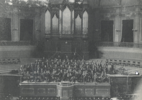 Year 1908. Amsterdam Royal Concertgebouw Orchestra (RCO/KCO) with Willem Mengelberg (1871-1951) in the Trocadero palace, Paris, 14-04-1908, Matthaus Passion.