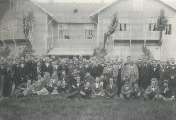 Year 1898. Amsterdam Royal Concertgebouw Orchestra (RCO) with Edvard Grieg (1843-1907) and Willem Mengelberg (1871-1951) in Bergen, Norway. June.