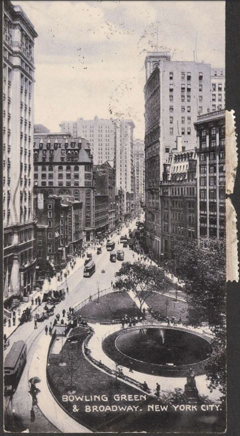 03-04-1909. Postcard to Grafin Maria Misa von Wydenbruck-Esterhazy (1859-1926). Bowling Green and Broadway.