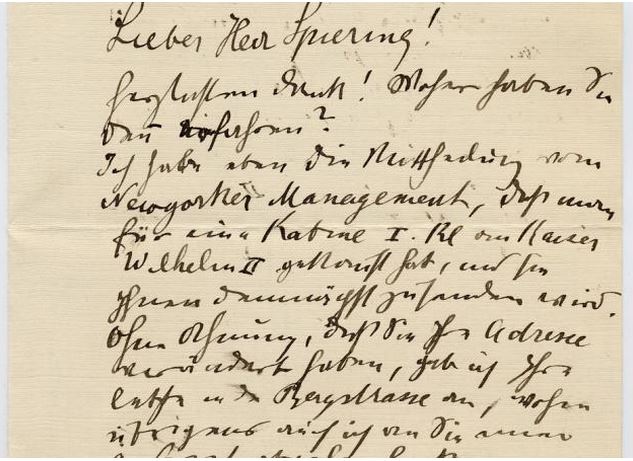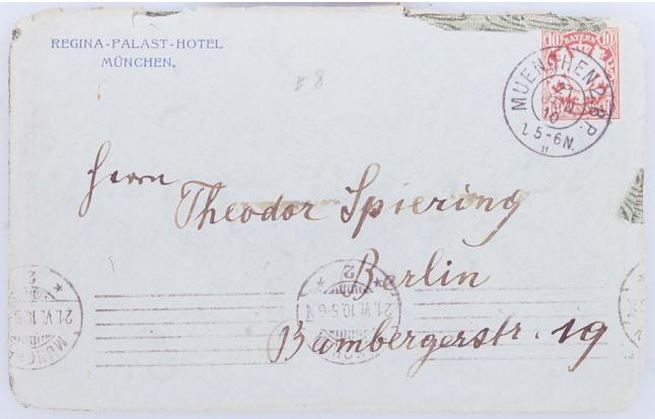 Dear Mr. Spiering, I just received the information from the New York management that they ordered a cabin First Class on the Kaiser Wilhelm II and will send you the ticket soon. Without knowing that you changed your address, I gave them your last address at the Bergstrasse, the same place where I also addressed a letter to you on the 2nd. I hope all your mail will be forwarded to you. Heartily yours, Mahler
