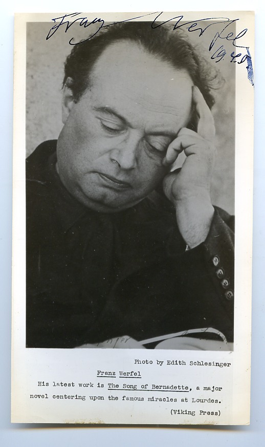Franz Viktor Werfel was an Austrian-Bohemian novelist, playwright, and poet whose career spanned World War I, the Interwar period, and World War II. He is primarily known as the author of The Forty Days of Musa Dagh (1933, English tr. 1934, 2012), a novel based on events that took place during the Armenian Genocide of 1915, and The Song of Bernadette (1941), a novel about the life and visions of the French Catholic saint Bernadette Soubirous, which was made into a Hollywood film of the same name.