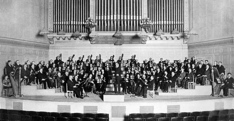 During World War I, Karl Muck (1859-1940) (born in Germany but a Swiss citizen since childhood), was arrested, shortly before a performance of the St. Matthew Passion in 1918, and interned in a prison camp without trial or charge until the end of the war, when he was deported. He vowed never to return, and conducted thereafter only in Europe. The BSO’s next two titled conductors were French: Henri Rabaud, who took over from Karl Muck (1859-1940) for a season, and then Pierre Monteux from 1919 to 1924. Monteux, because of a musician’s strike, was able to replace 30 players, thus changing the orchestra’s sound; the orchestra developed a reputation for a “French” sound which persists to some degree to this day.