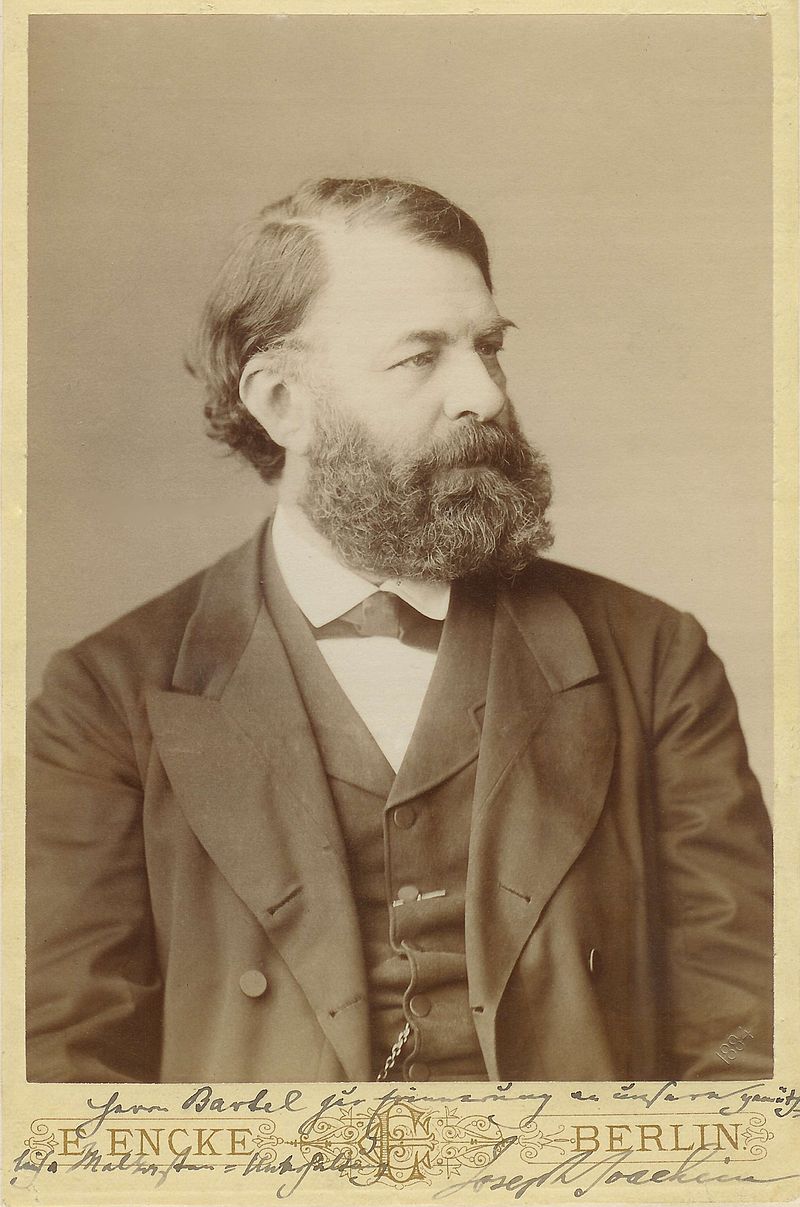 On 10 May 1863, Joachim married the contralto Amalie Schneeweiss (stage name: Amalie Weiss) (1839-1899). Amalie gave up her own promising career as an opera singer and gave birth to six children. She continued to perform in oratorios and to give lieder recitals. In 1865 Joachim quit the service of the King of Hanover in protest when the Intendant (artistic director) of the Opera refused to advance one of the orchestral players (Jakob Grün) because of the latter’s Jewish birth. In 1866, as a result of the Austro-Prussian War, in which Prussia and its capital Berlin became the dominant German state and city, Joachim moved to Berlin, where he was invited to help found, and to become the first director of, a new department of the Royal Academy of Music, concerned with musical performance and called the Hochschule für ausübende Tonkunst.