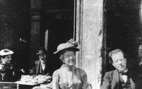 1907. Venice. Justine (Ernestine) Rose-Mahler (1868-1938) and Gustav Mahler (1860-1911). Here they are seated in front of the Cafe Quadri. This photo is from 1907 and not 1890.