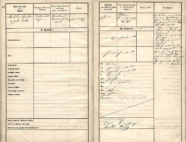 In his very first semester young Mahler drew the attention of the school management and Jihlava’s public to himself by honestly returning a wallet with a large amount of money that he found; word of the case spread to the public through the town crier after he had drummed up people across the town. In the first years of Gustav’s studies his results weren’t bad. At the end of the first year he placed 22nd among the 49 pupils, and one year later he placed sixteenth out of forty.