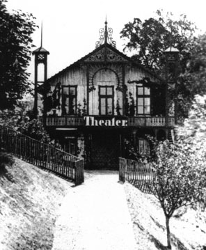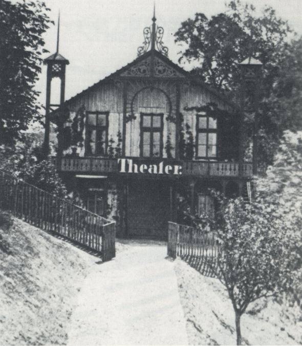Summer Theater. Commemorative plaque in Kurhaus park, Hillischerweg, where the old wooden Summer Theater once stood.