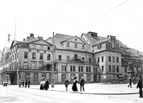 The old theater building on Königsstraße / Opernplatz proved to be inadequate at the end of the 19th century. It was too small for the ever growing population and the fire protection is not enough. Shortly after 1900, artistic director Freiherr von Gilsa developed the plan to sell the theater property and use the proceeds to build a new building on the open narrow side of Friedrichsplatz, on the former Auetor, especially as the site also belonged to the Treasury.