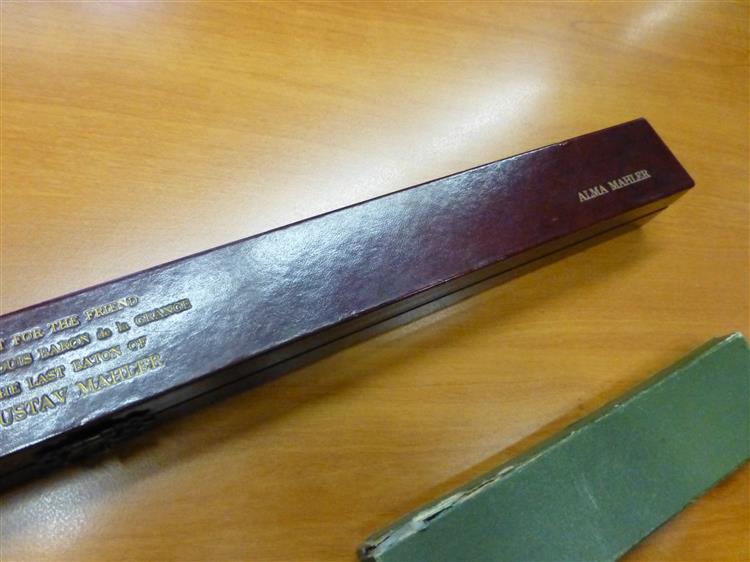 Baton of Gustav Mahler (1860-1911), Médiathèque Musicale Mahler, Paris. Gift for the friend Henry-Louis de La Grange (1924-2017) the last baton of Gustav Mahler. Alma Mahler (1879-1964). Case.