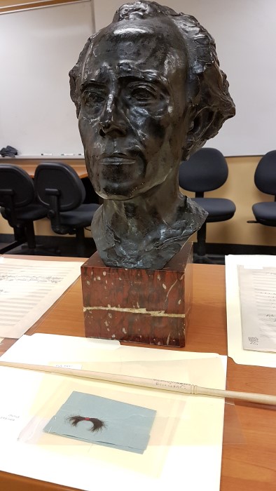 Sculpture of Gustav Mahler (1860-1911) by Auguste Rodin (1840-1917), Mahlers’ baton and hair in the Gustav Mahler-Alfred Rosé Collection – University of Western Ontario.