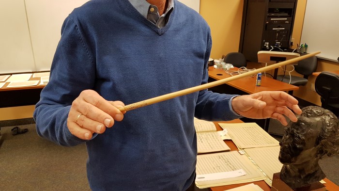 Baton of Gustav Mahler (1860-1911) in the Gustav Mahler-Alfred Rosé Collection – University of Western Ontario. The baton has the notation “von Gustav Mahler benutzt” (used by Gustav Mahler) in the characteristic handwriting and the lilac color of Alma Mahler (1879-1964).