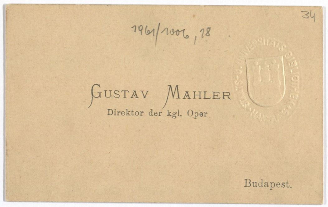 Budapest Business card Gustav Mahler (1860-1911) for Laura Hilgermann (1865-1945). 2/2