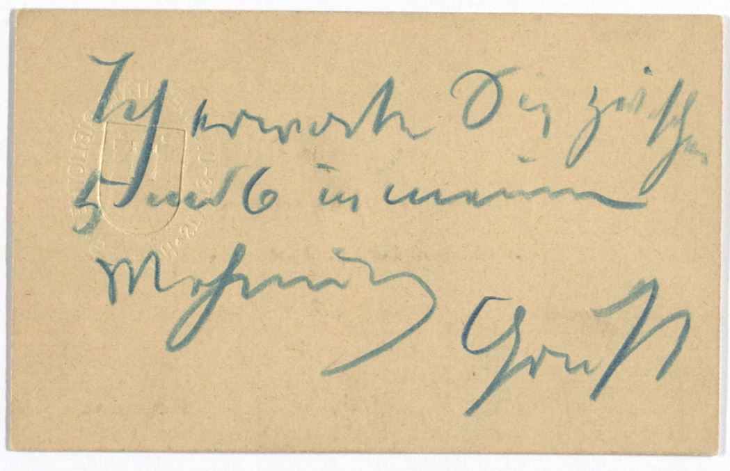 Hamburg. Business card Gustav Mahler (1860-1911) for Lieber Freund. 1/2
