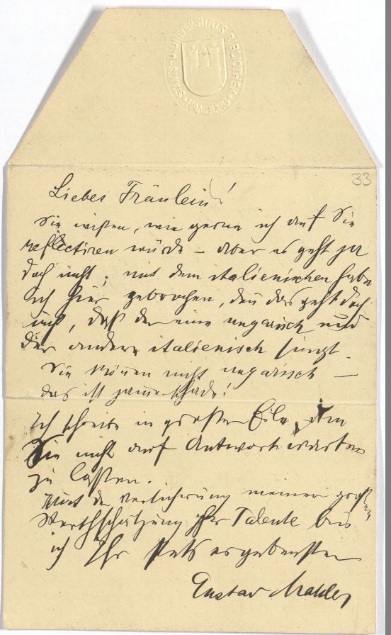 Budapest Business card Gustav Mahler (1860-1911) for unknown. 2/2