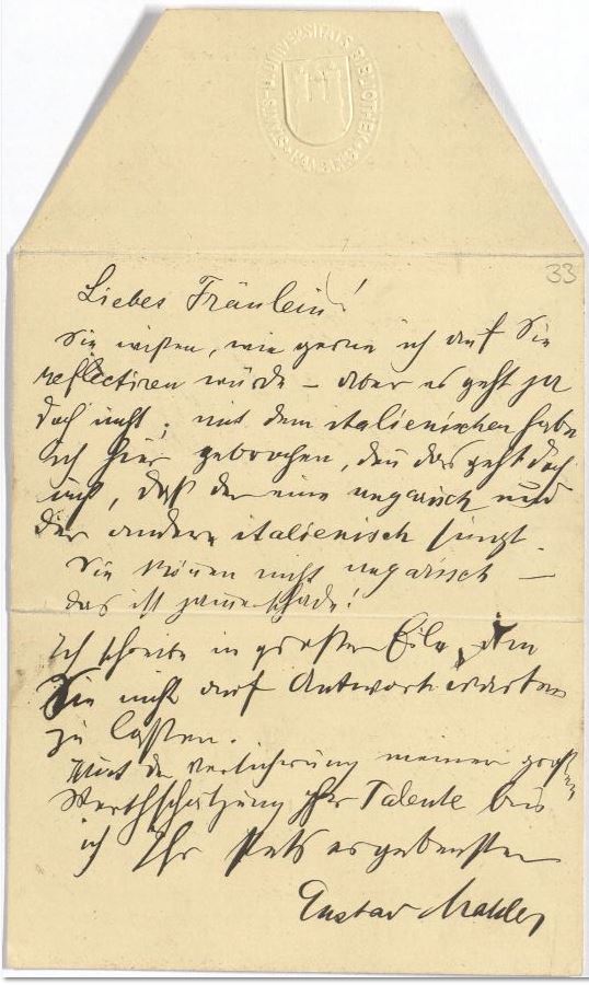 Hamburg. Business card Gustav Mahler (1860-1911) for Liebes Fraulein. 2/2
