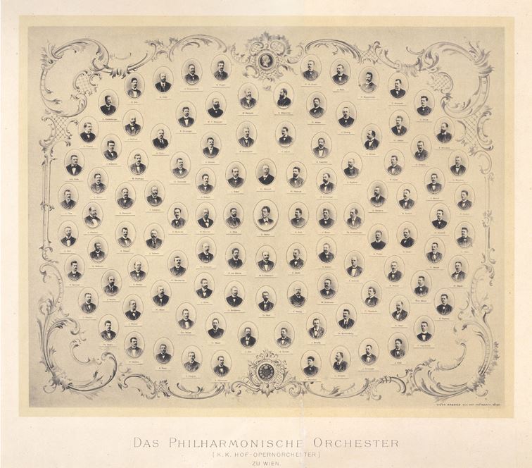 35. 1900. Vienna. Mahler (center) and members of the Vienna Philharmonic Orchestra (VPO). The photograph was taken for the orchestra’s first foreign concert tour, to Paris for the World exhibition Paris (1900).